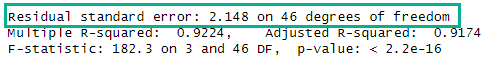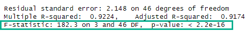 F-statistic: 182.3 on 3 and 46 DF, p-value: < 2.2e-16