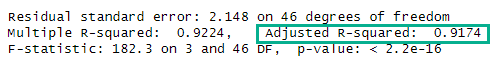 Multiple R-squared: 0.9224, Adjusted R-squared: 0.9174