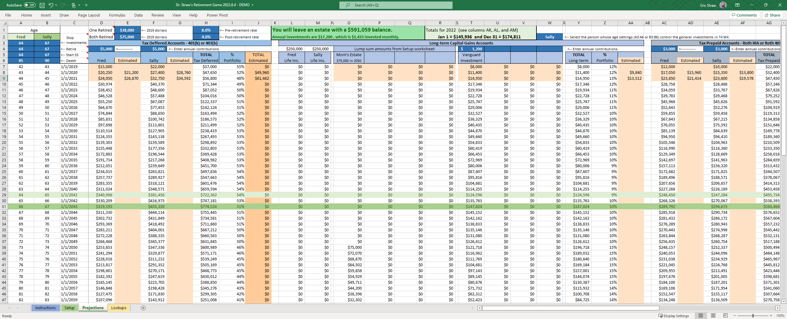Dr. Straw's Retirement Game is a Microsoft Excel based tool designed to help you play the what-if retirement game in real life.